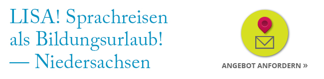 LISA! Sprachreisen - auch solche mit Urlaubs-Charakter - sind in Niedersachsen als Bildungsurlaub anerkannt: Wer seinen Arbeitsplatz in Niedersachsen hat, kann durch sorgfältige Planung 14 Tage zusätzlichen, voll bezahlten Urlaub vom Arbeitgeber erhalten, um im Rahmen einer Sprachreise eine Sprache zu lernen und gleichzeitig im Ausland Urlaub zu machen. Beschäftigte aus verschiedenen Branchen – darunter Mitarbeiter von der Volkswagen AG sowie aus dem Bankenssektor z.B. Norddeutsche Landesbank oder aus der Tourismusbranche z.B TUI AG in Hannover und Umgebung – nutzen jedes Jahr diese Gelegenheit, um im Rahmen des Bildungsurlaubs an einer Sprachreise teilzunehmen.