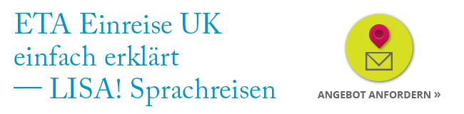 Großbritannien hat ein digitales Einreisesystem eingeführt. Daher ist seit 2. April 2025 die Einreise nach Großbritannien nur mit einer digitalen Genehmigung, einer ETA möglich. Bei einer LISA! Sprachreise nach Großbritannien ist eine ETA notwendig. Hier erfahren Sie genau, wie Sie diese beantragen können.
