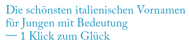 Italienische Mädchennamen – die komplette Dolce-Vita-Auswahl! Von klassisch bis modern, kurz bis lang, elegant bis verspielt – hier finden Sie alle italienischen Vornamen für Mädchen, die Stil, Klang und Charakter vereinen. Ob Sofia, Aurora oder Ginevra – viele schöne italienische Vornamen finden sie hier.