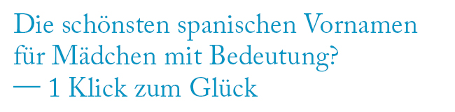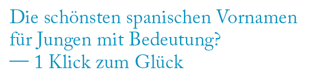 Suchen Sie einen schönen und modernen spanischen Vornamen für Ihren Sohn oder Ihre Tochter? Unsere Sammlung hilft Eltern, einen passenden Vornamen für jeden Geschmack und mit besonderen Bedeutungen zu finden. Kombinieren Sie die Suche nach einem Vornamen mit einer Sprachreise nach Spanien mit LISA! Sprachreisen.