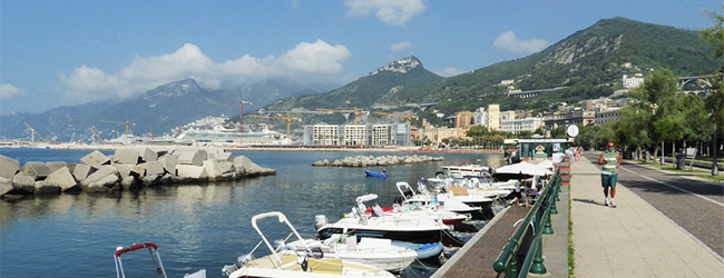 Ausblick auf die Bucht von Saerno mit Booten und der Promenade bei einer LISA! Sprachreise