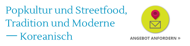 Südkorea ist eine wunderbare Fusion von Tradition und Moderne. In der Hauptstadt Seoul dominieren moderne Glasfassaden das Stadtbild. In den weiten Gärten der Tempel wandeln die Koreaner in ihren traditionellen Gewändern. In vielen Straßen finden sich traditionelle Restaurants und Essenstände. Der Duft nach Kimchi und koreanischem Barbeque zieht durch die belebten Seitenstrassen.