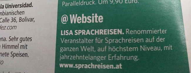 In der März-Ausgabe 2018 des größten österreichischen Reisemagazins 'Reiselust' verwies die Redaktion auf die Kompetenz von LISA! Sprachreisen: