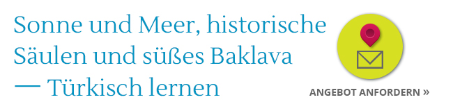 Die schnellste Methode, Türkisch zu lernen, ist ein professioneller Sprachkurs an einer guten Sprachschule in der Türkei. Unsere Türkisch-Sprachreisen ermöglicht Ihnen in kurzer Zeit, Türkisch in fließenden Sätzen sprechen zu lernen. Einheimische verstehen Sie jeden Tag besser. Gleichzeitig verbringen Sie an den schönsten Plätzen in der Türkei einen Traumurlaub. Unsere Türkisch-Sprachkurse eigenen sich für Erwachsene aller Alters- und Sprachniveaustufen.